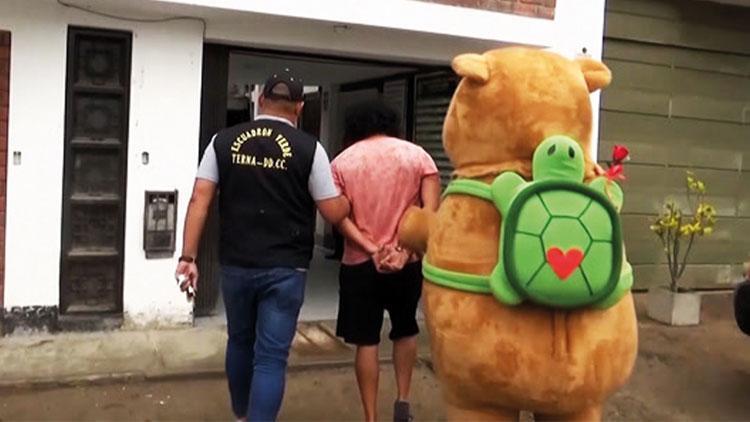 Peru’da kapibara kostümü giyen polis memuru, 14 Şubat’ta “Sevgilinizden hediye var” diye kapıyı açtırdığı uyuşturucu satıcılarını yakaladı.