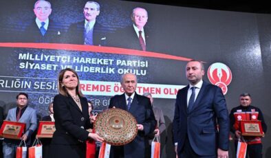 MHP lideri Bahçeli, deprem bölgesi öğretmenlerine plaket verdi